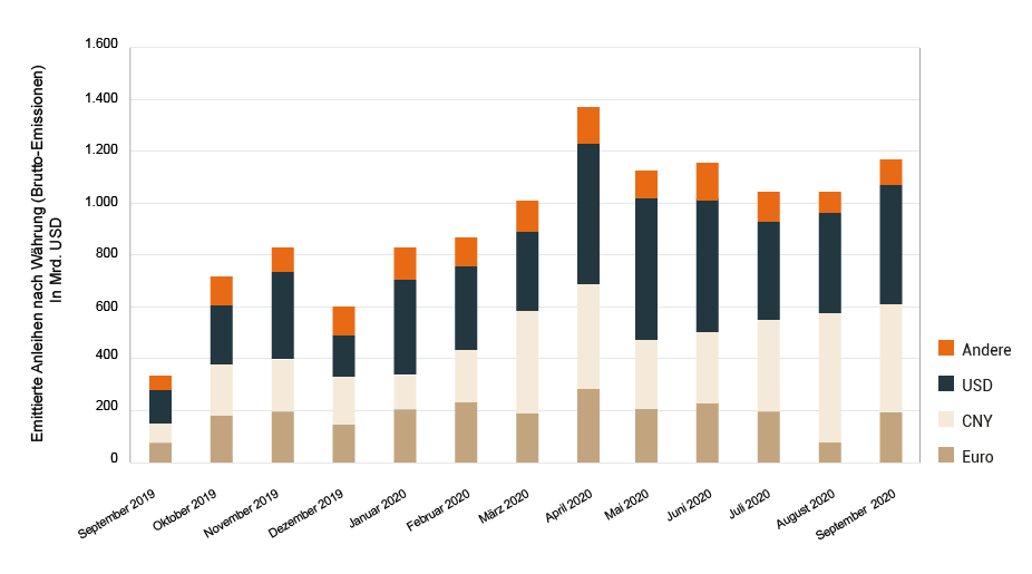 Emittierte Anleihen (Bruttoemissionen, nach Währung)