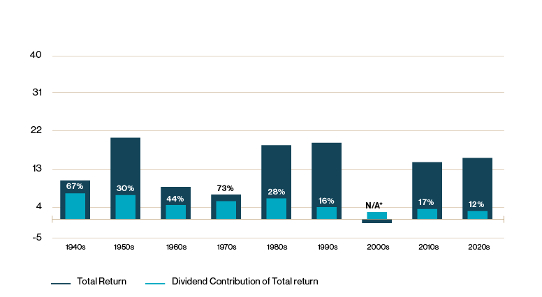 Beitrag von Dividenden zur Gesamtrendite variiert je nach Jahrzehnt