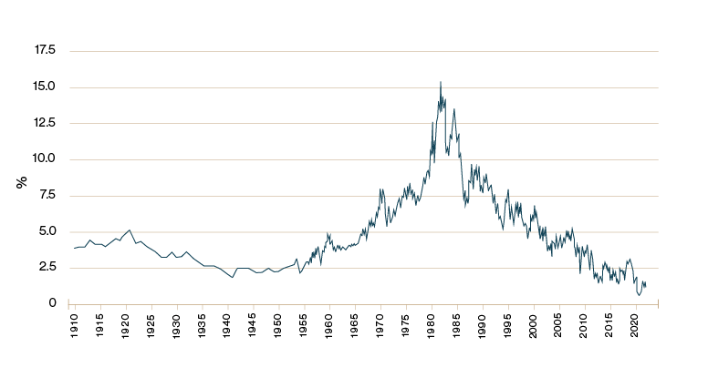 Die meisten Anleger werden sich nicht mehr an den 30. September 1981 erinnern, als die Rendite bis Fälligkeit zehnjähriger US-Treasuries den höchsten Stand seit der Gründung der Federal Reserve 1913 erreichte. Dieser Höchststand war auf die Bestrebungen des damaligen Vorsitzenden Paul Volcker zur Bekämpfung der Stagflation zurückzuführen.
