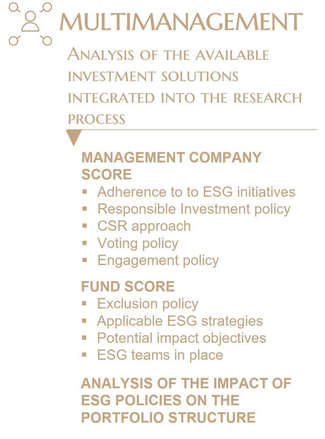 We integrate environmental, social and governance (ESG) criteria at different stages of our investment processes, depending on the specific characteristics of the asset classes and universes covered. This approach is consistent with our historical method of analysis: non-financial analysis (sometimes called extra-financial reporting) complements traditional financial analysis to develop a comprehensive understanding of the issuers that are analysed and thereby forge solid investment convictions.