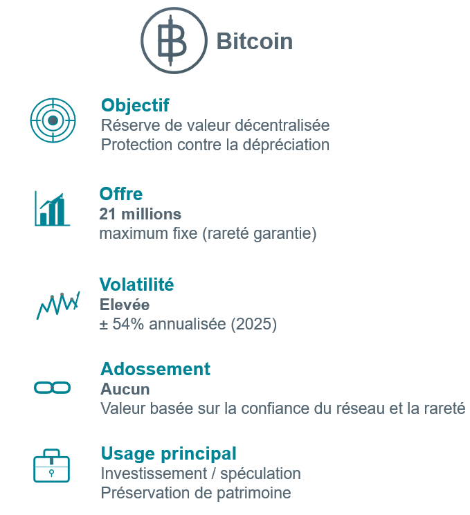 Les stablecoins pourraient offrir une voie médiane. En combinant stabilité fiduciaire et efficacité blockchain, ils adressent certaines limites du Bitcoin.