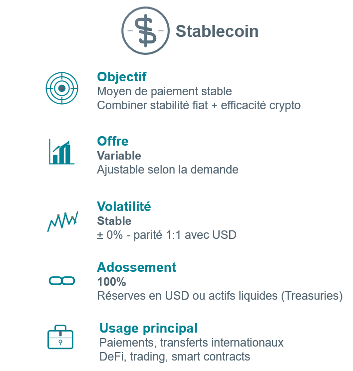 - USDC (Circle) : 76 milliards USD (+80% en un an)